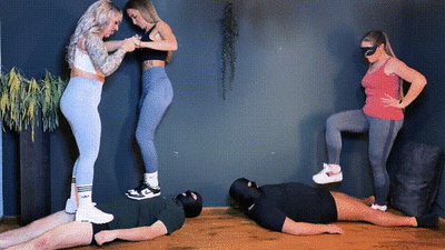 Drei sexy Göttinnen benutzen ihre Sklaven wie menschliche Yogamatten und sie machen ihre Sportübungen auf ihnen. Mit ihren Sneakern verpassen sie den Losern ein Trampling, bei dem auch die Genitalien hart getrampelt werden. Beim Ballbusting gibt es erst leichte Tritte, dann hartes Stampfen. Dass die Loser kaum noch atmen können, ignorieren die frechen Göttinnen. Wer den Göttinnen auf den geilen Arsch starrt, der bekommt ein Facesitting und ein Smothering. Die Loser müssen lernen, dass ihr Platz unter den Füßen ihrer Göttinnen ist.