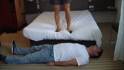 Für den Sklaven ist es sein erstes Trampling und er hat große Angst vor den Schmerzen. Die beiden Herrinnen sind stärker und lassen ihn nicht mehr entkommen. Seine Genitalien bestrafen die Ladys mit Ballbusting. Der ganze Körper wird getrampelt, so gibt es auch ein Headstanding und Throatstanding, damit er aufhört, zu zappeln. Obwohl die Herrinnen barfuß sind, sind ihre Tritte sehr hart. Trotz großer Schmerzen macht den Loser das Trampeln geil. Für sein Gezappel wird der Loser mit Erniedrigungen und Tritten bestraft.